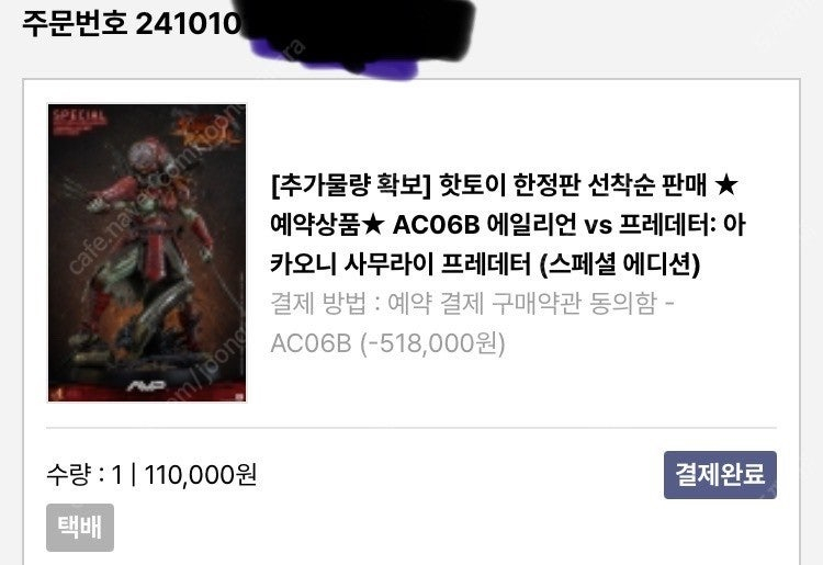사무라이 프레데터 한정판 예약금 양도합니다. 11만원 -) 10만원 입니다. 📢 제목에 "제조사/ 브랜드 명"과 "상품명”를 넣어 작성하면, 보다 빠른 판매가 가능합니다! 📢 게시글 작성 시 배송 방법에 “직거래”와 “내 위치” 설정할 경우, 보다 빠른 판매가 가능합니다! 🚨회원님의 거래 게시글을 노린 중고나라 운영진 사칭 피싱 사이트를 주의하세요🚨