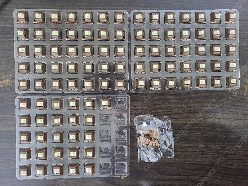📢 제목에 "제조사/ 브랜드 명"과 "상품명(ex. 맥북 에어 13)”를 넣어 작성하면, 보다 빠른 판매가 가능합니다! 📢 게시글 작성 시 배송 방법에 “직거래”와 “내 위치” 설정할 경우, 보다 빠른 판매가 가능합니다! 독거미 Aula F108 카라멜라떼축에서 적출한 스위치들 입니다 35 + 35 + 26 + 4 = 총 100개 구성이구요 구입 후 스위치 교체 전 키보드 테스트 하면서 1회 타건하고 바로 스위치 트레이에 포장해둔 상태입니다 스위치 중고 거래 할 때 핀 구부러진 게 있는지가 제일 걱정인데 트레이 포장이라 택배거래도 걱정 없구요 전체적으로 훑어 보시라고 뒷면 사진도 첨부했습니다 직거래는 포항에서 가능하고 비용 부담하시면 택배거래도 가능합니다 (GS 반값도 가능) 연락 주세요~ 🚨회원님의 거래 게시글을 노린 중고나라 운영진 사칭 피싱 사이트를 주의하세요🚨