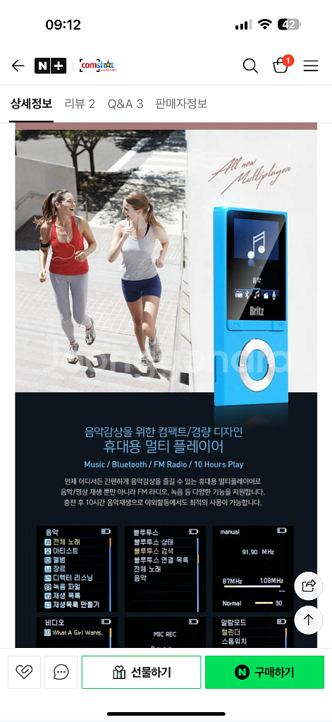 Britz 휴대용 MP3 플레이어입니다. 컴팩트하고 가벼운 디자인으로 휴대하기 좋아요. 색상은 시원한 블루입니다. 블루투스 기능도 지원합니다 공기계만 있어요 USB 충전선 있어요 메모리카드랑 이어폰 따로 준비해야되요 환불/반품 안됩니다. 반택 됩니다. 문고리만 가능합니다. 선불만 받습니다.