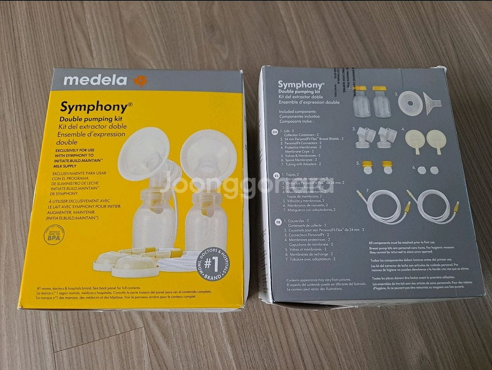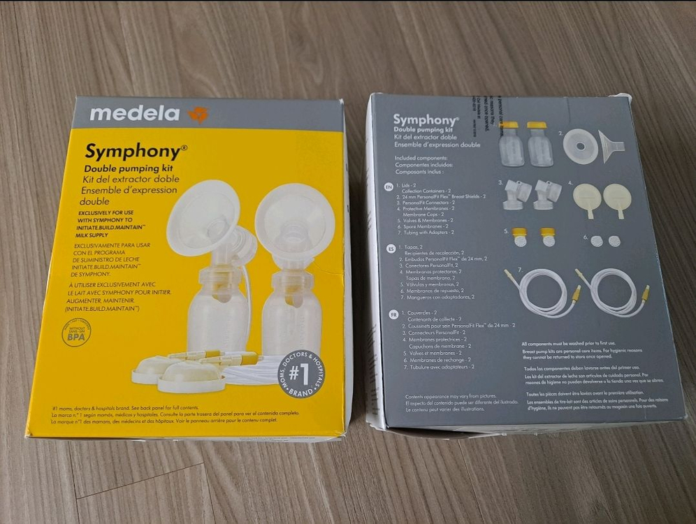 메델라 심포니 더블 펌핑 키트입니다. 가족이 미국에서 가져왔다가 미사용한, 미개봉 새제품입니다. 택포입니다.