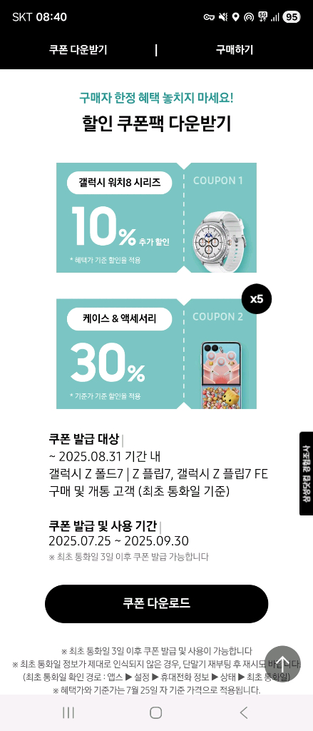 삼성 갤럭시 워치8 , 액세서리 할인쿠폰 팝니다~