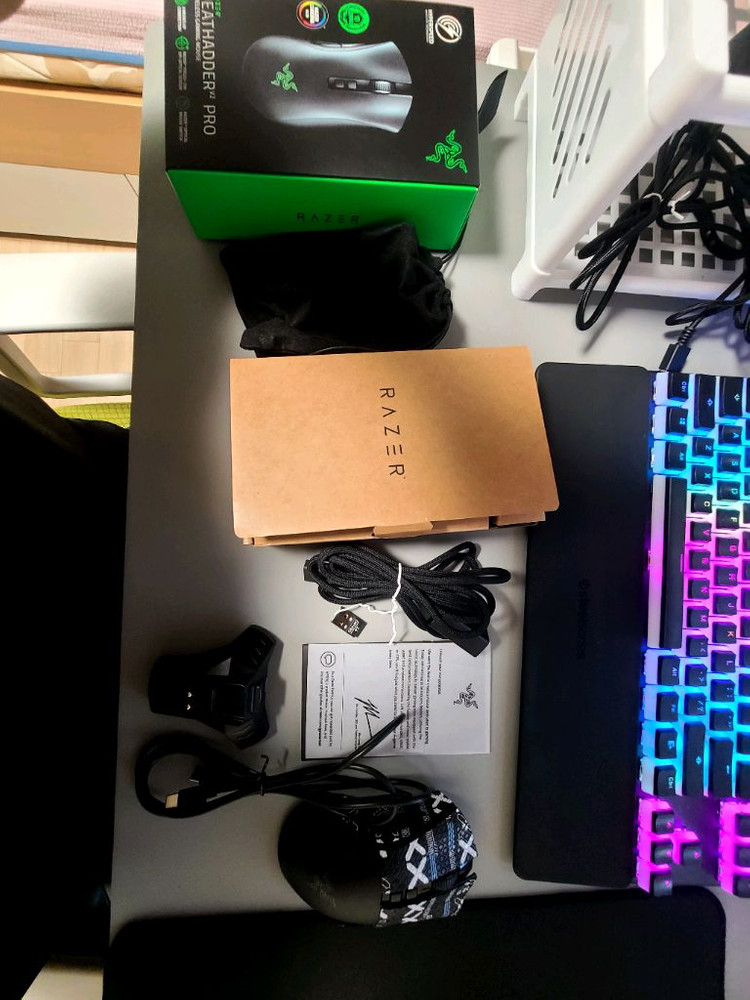 마우스 당근 구매 후 2번 정도 쓰고 손에 안맞아서 다시 판매합니다 구성품 빠짐 없고 작동 상태 이상 없습니다 전 판매자도 몇 일 쓰시다가 보관만 하고 파셔서 실 사용일 1~2주 정도로 예상됩니다 마우스 오른 쪽( 엄지 손가락 그립 ) 사용감 있어서 알코올 패드로 세척 하고 그립 테이프 쌈뽕한 걸로 붙여서 사용했습니다 떼시고 사용하셔도 되는데 짱짱하니까 붙이고 쓰시는걸 추천드려요 무선 충전 독 구매 후 2틀 정도 사용했습니다 (충전 독 자체에서 100%까지 충전 안시키니까 참고하세요) * 박스 포장한 채로 대기중 * 네고 가능 * 택배 가능 * 무선 충전 독, 그립 테이프 사실상 새상품