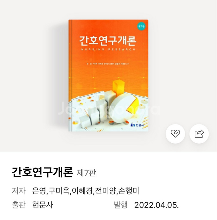 현문사 간호연구개론 7판 수정판입니다 깨끗하게 필기조금 되어있습니다 보통 한학기만 수업하고, 국시 과목은 아니라서 편하게 한학기 사용하시기엔 저렴하고 좋을것 같습니다 연락주세요~