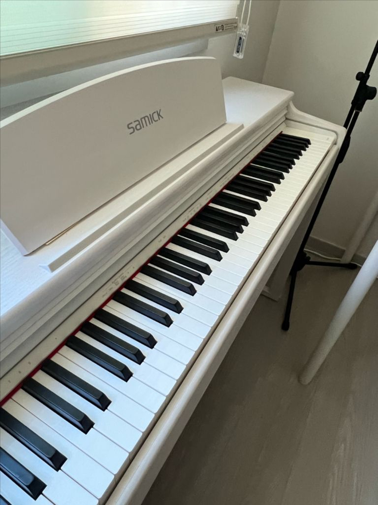 삼익악기 디지털피아노 DP-250PLUS 모델입니다. 해머건반이고, 색상은 흰색입니다. 상태는 사진과 같습니다. 정가는 100얼마 줬던 것 같습니다 구매 후 사용을 하지 않아 판매하게 되었습니다 상태는 보다시피 새상품이고 화이트라 이뻐요!ㅎㅎ 의자는 이사 중에 버려서 없습니다만 문제되진 않을 거에요 ㅎㅎ