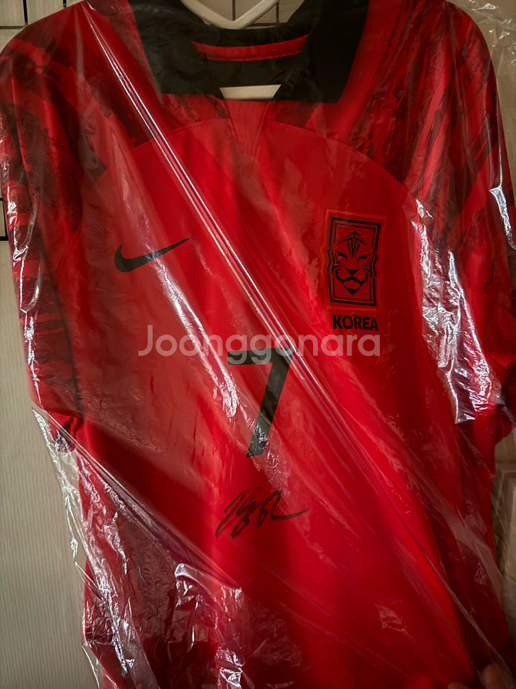 23년도 대전에서 국대경기있을때랑 공항에서 직접 받은 싸인 유니폼이에요. 특이한 점은 손흥민 마킹 유니폼인데 어쩌다보니 앞쪽에 이강인 싸인을 같이 받았습니다.. 앞 뒤로 싸인이 있어요! (손흥민 싸인은 공항에서 / 이강인 싸인은 국대경기때) 2XL 사이즈고 유니폼은 강남 나이키에서 사고 마킹도 했습니다.