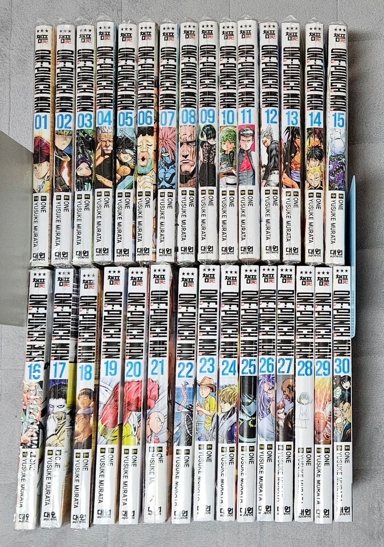 소장용 원펀맨 만화책 1~30권 세트 일괄 판매 누락없이 1권부터 30권 끝까지 다 있습니다 상태 : 최상 미개봉 : 19, 20, 22, 23, 24, 25, 26, 27, 28, 29, 30권 나머지는 전부 개봉 직후에 OPP 봉투 씌워 포장해뒀습니다. 밖에 꺼내두지 않고 리빙박스에 넣어 암실보관 해둔 것들이라 하자없고 상태 좋아요. 봉투 겉면의 자글자글한 건 책에 난 하자가 아니고 봉투 특유의 엠보싱 재질입니다. ※ 구매 기준 1~2일내 배송해드려요. ※ 무게, 부피 때문에 일반택배만 가능합니다. (배송비+4000)