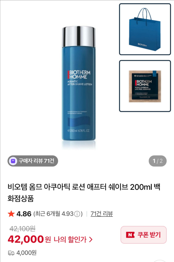 (새제품)비오템 애프터쉐이브로션 팝니다 사용기한은 27년9월까지로 넉넉합니다 구매후 환불이어려우니 양해부탁드립니다~ 우편거래는 4천원 추가됩니다~ 구매후 환불이어려우니 양해부탁드립니다~ 우편거래는 4천원 추가됩니다~