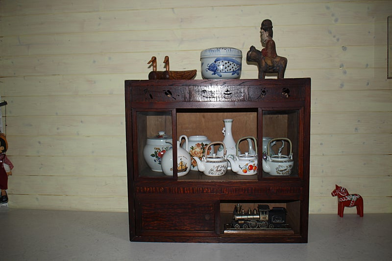 100년 소품 왜정시대 찬장 - 아래 실사진 참조 방문 용인, 택배 불가. 문의 010-4607-0102 (문자로 주세요) 오래된 고가구 입니다. 일제 강점기(왜정시대) 만들어진 물건으로 당시 부엌 찬장으로 만들어진 것으로 보입니다. 윗면은 좌/우 유리장 형태이고, 아랫쪽은 송판 여닫이 가림판 형식으로 2단 형태 입니다. 신작 재현품과는 멋스러움에 많은 차이가 있습니다. 특히 수리된 흔적도 전혀 없습니다. 칫수 : 가로(너비) 75.5, 세로(높이) 71, 폭 35센치 재질은 소나무 (송판)이고, 유리 프레임(틀)은 목질이 단단한 괴목 나무 또는 가죽 나무로 보여집니다. 만들어진 년대는 대략 80년~100년 정도 되어보이고, 뒷면에 소화(昭和)라는 왜정시대 연호가 보입니다. 한자를 잘 아시는 어르신께서는 뒷면의 글씨가 소화17년 (서기1942년) 으로 해독 된다고 합니다. 이 경우 대략 83년 정도 된 골동품 옛기물 인 듯 합니다. 할머니 때 부터 시골 주택에 잘 보관되었고, 세월의 무게에도 아주 온전하게 잘 보존된 기물입니다. 수리 흔적이나 깨진 흔적 없고 시간의 무게만 간직된 소품입니다. 특히 작은 장식품에도 예술적 감각을 주기 위해 윗면에 6개 문양을 넣었고 이는 내/외부 공기를 맞 통하게 하려는 설계였던 것으로 보입니다. 연세가 있으신 어르신은 어린 시절 부엌에 이러한 찬장에 장류 또는 양념을 넣고 보관했던 기억이 있는 분도 계실 겁니다. 어쩌면 고가구 중 반닫이는 그래도 어렵지 않게 구할 수 있지만, 이러한 앞면 유리가 들어간 찬장은 정말 흔치 않은 물건으로 생각됩니다. 사진과 같이 내/외부에 장식 물건을 넣어도 인테리어 효과 좋고, 음식이나 주방 소품 또는 책/문구 등 보관 용도 등 실사용 하셔도 품격 있습니다. 이러한 오래된 소품은 시간이 지날수록 희소성도 높아지고 그 가치도 올라갑니다. 참고로 사진에 있는 각각의 물건도 필요하시면 판매하도록 하겠습니다. 아래의 휴대폰 번호의 문자로 연락주시면 제가 판매 가능한 가격 알려드리도록 하겠습니다. 싸이즈가 크고 파손위험이 있어서 택배는 불가합니다. 가급적 용인(수지) 방문 후 수령하시면 좋구요, 수도권의 경우 퀵 용달을 호출하여 상차해드릴 수 있습니다. 현재는 사용하지 않고 사진과 같이 먼지 안타게 보관중입니다. 문의 010-4607-0102 휴대폰 문자로 부탁드립니다. 예 : 왜정시대 고가구 찬장 *** 문의