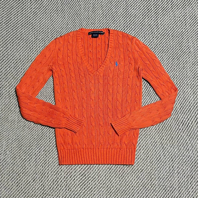 ▫️제품명 : 폴로 랄프로렌 주황 케이블 브이넥 니트 ▫️가격 : (택배비무료) 38,000원 ▫️사이즈 : 여성용 XS(85) ▫️실측 : 총장 55.5 가슴 39.5 ▫️상태 : 9.5 / 10 ____________________________________________ 직거래시 평일 오후 6시이후 의정부 가능동 의정부고등학교 부근에서 가능하며 이동 어렵습니다 그외 택배거래 부탁드립니다!