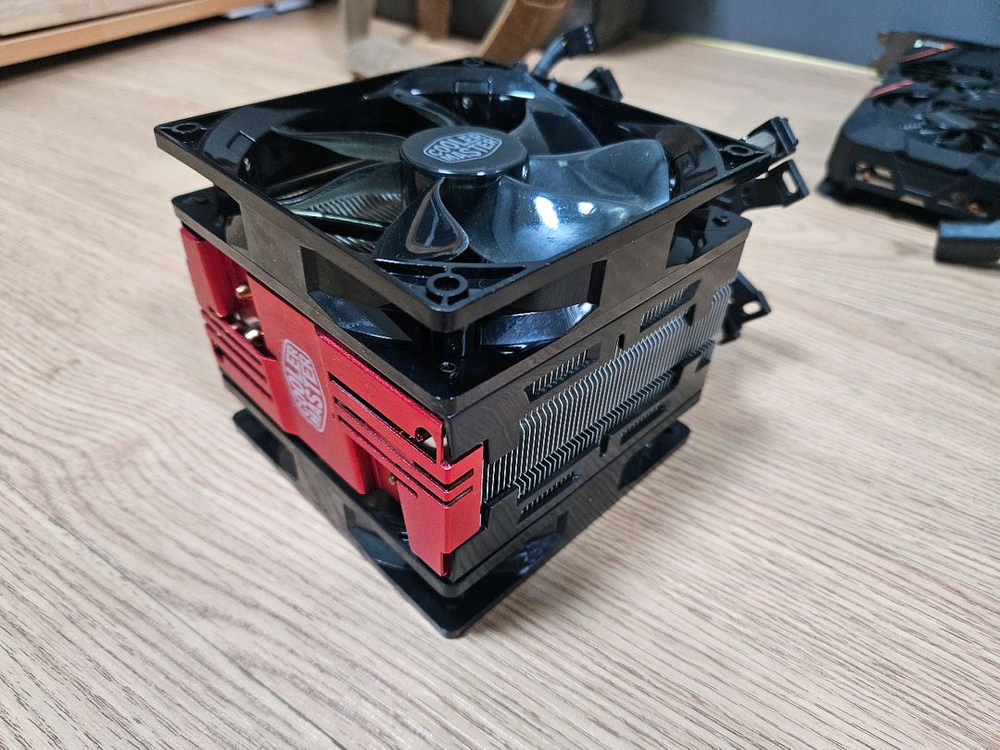 쿨러마스터 CPU 쿨러2팬 상태는 사진과 같습니다 인텔용으로 결합되어 있습니다 사진에 칩셋 확인하세요 amd pc로 교체하고 amd플레이트를 분실해서 사용 못하고 판매합니다 부산직거래 가능 택배는 배송비 별도