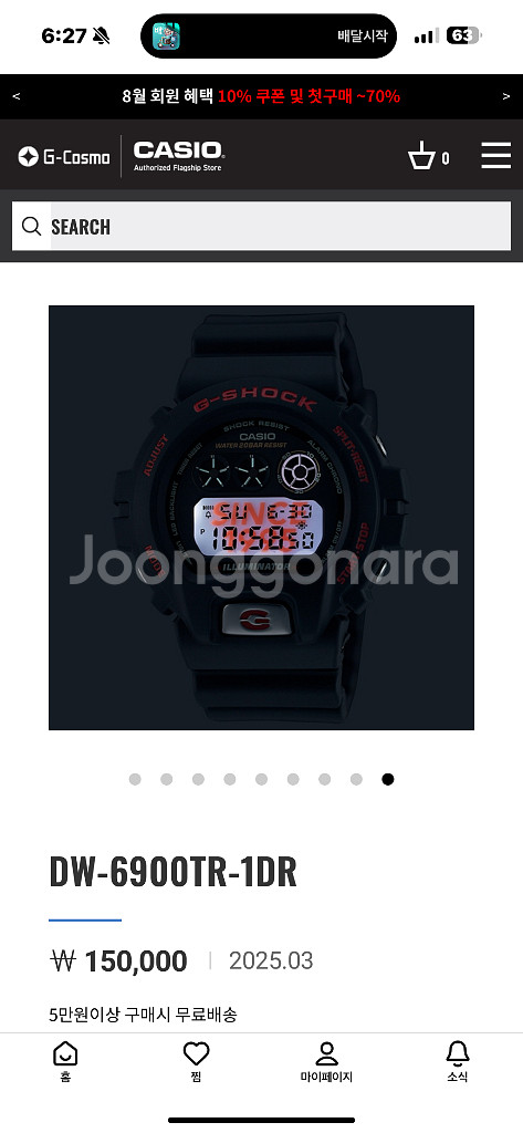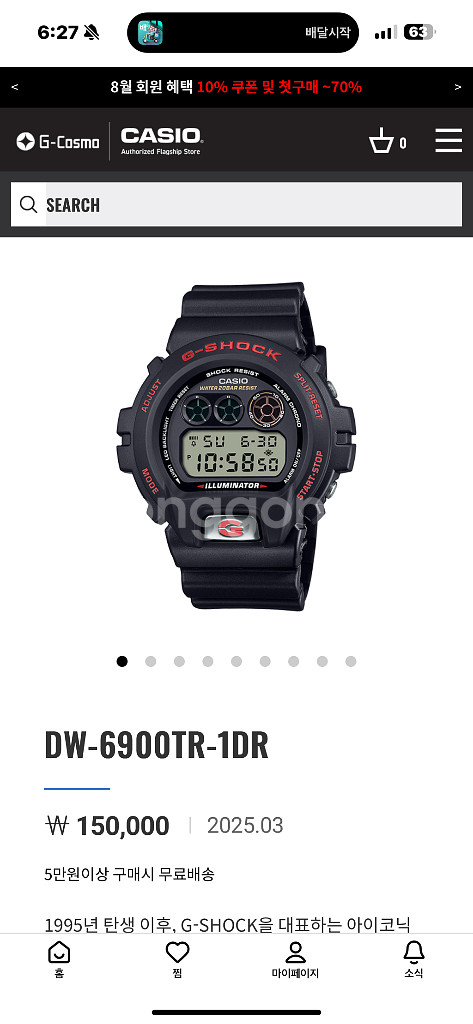 G-Shock DW-6900TR-1DR 시계입니다 상태 좋습니다. 보증서 박스 풀셋 카시오 지샥 태그호이어 오리스 볼워치 MRG 세이코 시티즌 오셔너스 오메가 튜더 미도 론진 해밀턴 티쏘 브라이틀링 라도