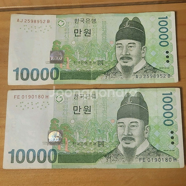 희귀번호 레이더 지폐 두 장 6만원에 판매합니다. 사용감있고 시세도 잘 몰라서 대충 싸게 내놓아요. 가격제시가능해요. 반택거래만 하고 택배비는 제가 부담합니다. AJ 2598952 B (어센딩 레이더) FE 0190180 H (사다리형 레이더) 희귀번호 레이더 지폐 AJ2598952B FE0190180H
