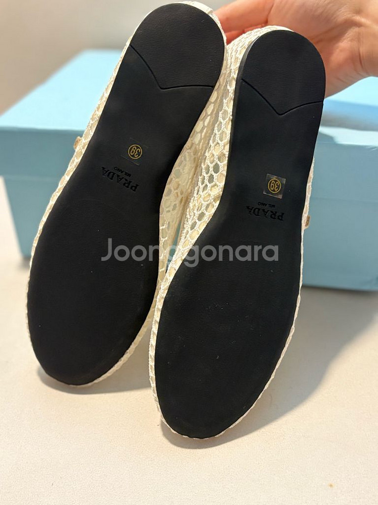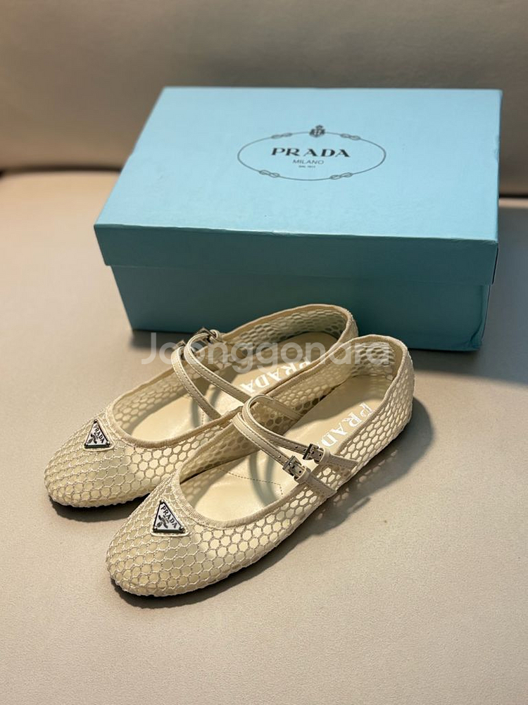 프라다 메쉬 메리제인 플랫슈즈 아이보리 색상 39사이즈 240-245 박스구성 실물이 훨씬 이쁘고 가을에 흰양말에 치마나 원피스 매치해서 신어도 이뻐여 어렵게 구했는데 사이즈가 안맞아서 저렴하게 내놓습니다 발볼 넓은 분들도 엄청 편하게 신을수 있어요 교환X반품X