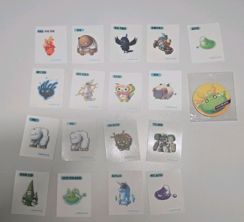 쿠키런 띠부씰 메이플 띠부씰 딱지랑 카드 일괄로 17000에 팝니다