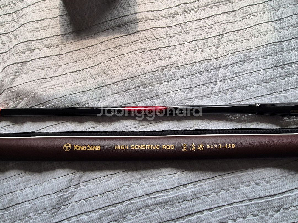 용성 파도기 3-430 입니다 작년에 구입하여 유료 낚시터에 1번 가지고 갔었습니다 주력대가 따로 있어 예비대로 가지고 가서 한번 잠깐 사용해 봤습니다 손잡이 부분어 미끄럼 방지 하기위해 열수축 고무 감아 놨습니다