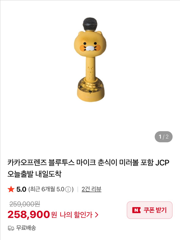 귀여운 카카오프렌즈 춘식이 블루투스 마이크 새상품 판매합니다! ✔️ 새상품/미개봉 ✔️ 춘식이 캐릭터 디자인 ✔️ 미러볼 기능 탑재 ✔️ 블루투스 연결 노래 좋아하시는 분들, 선물 찾으시는 분들께 강력 추천드려요 👍