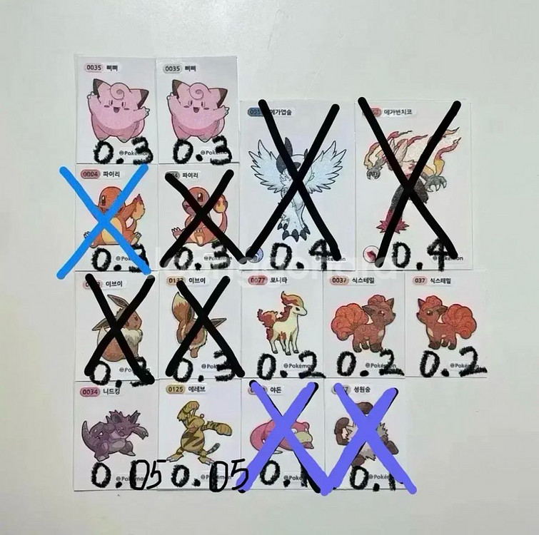 포켓몬빵 띠부씰 삐삐 포니타 니드킹 에레브 식스테일