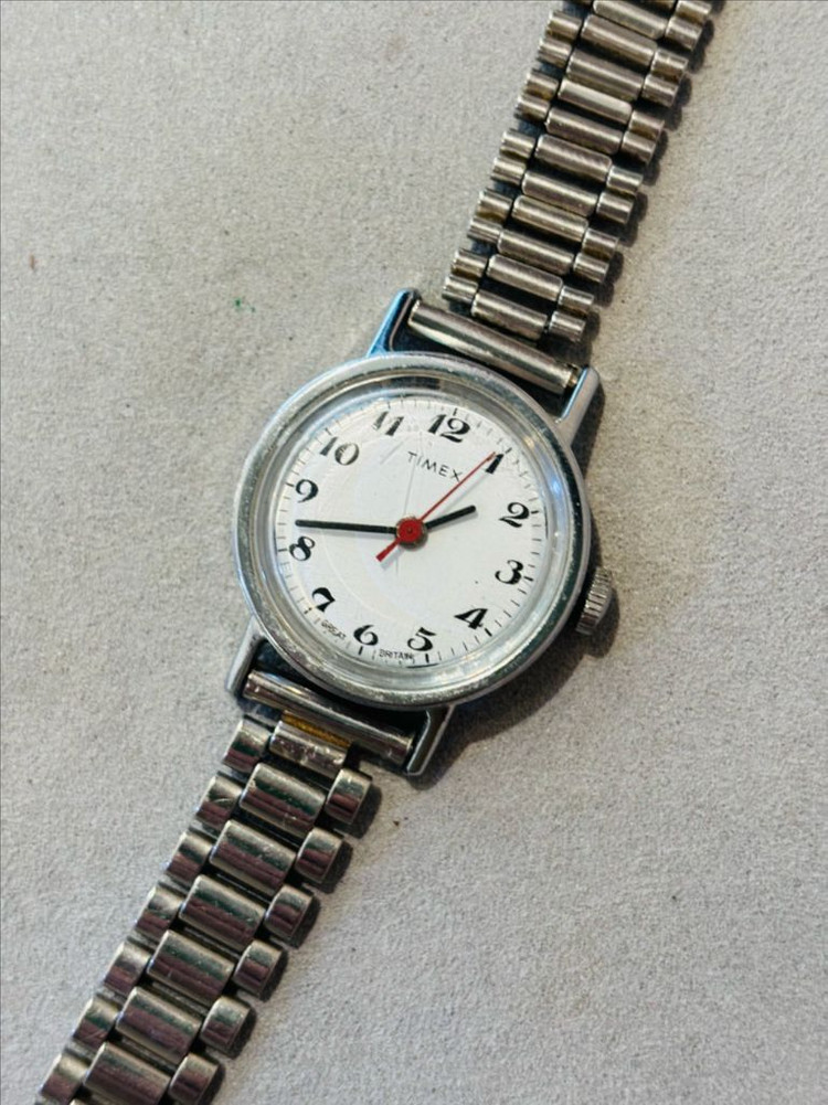 타이맥스 Timex 여성용 빈티지 수동시계입니다. 케이스와 글라스에 생활기스 있습니다. 무보정 사진이므로 상세 사진을 확인바랍니다. 빈티지 수동시계 특성상 일오차가 있을 수 있습니다. 또한 용두를 뽑을때 초침이 멈추는 핵기능이 없습니다. Made in Great Britain Size : 25 mm(용두제외) 시계전체길이 17cm Color : 스틸 - 모든 시계는 제가 직접 깨끗이 청소하고, 24시간 이상 동작 확인 및 기본적인 정비를 하여 이상이 없는 제품만을 판매합니다. - 빈티지 제품은 특성상 사용감, 스크래치 등이 존재하며 이러한 경우 사진과 함께 최대한 자세히 설명을 하도록 노력하고 있습니다. - 새상품이 아니므로 초기 불량 이외에는 A/S, 교환, 환불이 어려우니 궁금한 점은 톡으로 문의주시고 구매바랍니다. -택배 또는 매장 방문하셔서 구입가능합니다 (서울 광진구 광장로75-1, 1층 유로빈티지)