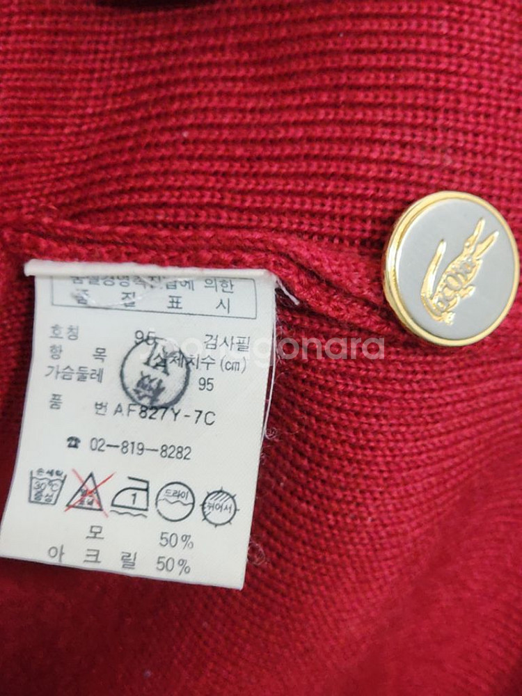 라코스테 숄카라 가디건 여성용 - 빨강 표기사이즈 95 (실측--> 100권장) 실측(Cm) 어깨단면50, 가슴단면51 팔기장57, 총기장72(목선부터) 금장단추 ~!!! 교신X 교환X 환불X 택배비 포함 (도서산간제외) ■빈티지 제품 특성상 자잘한 오염이나 기스가 있을수 있습니다. 민감하신 분들은 구매자제 부탁드려요!!