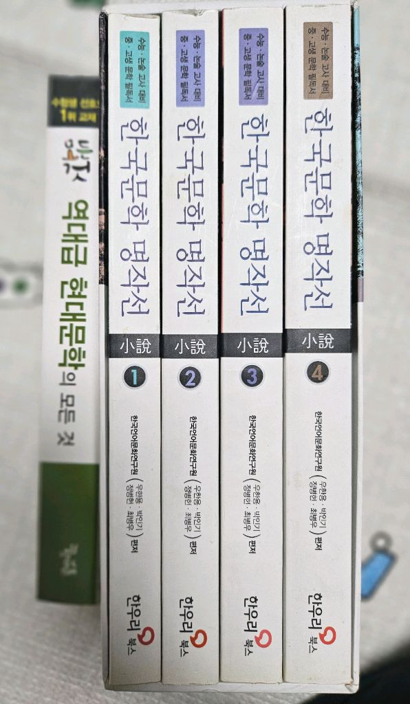 한우리 북스에서 나온 한국문학 명작선 (1~4) 와 역대급 현대문학의 모든 것 함께 드립니다~ 수능, 논술 대비용으로 좋아요 79,000원짜리 23,000원에 팔아요!