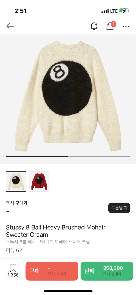 스투시 8볼 모헤어 니트