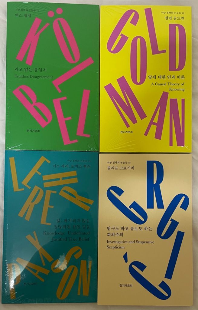 전기가오리 도서들입니다! 지금은 절판이라 구할 수 없는 것으로 알아요! 한꺼번에 구매하실 분들만 문의해주세요! 전체다해서 5만원! + 어느 대학원생 x의 석사과정 보드게임도 드려요! <서양철학의 논문들> 10 과오없는불일치(랩핑) 12 앎에 대한 인과이론(랩핑) 13 앎: 파기되지않는 정당화된 참인 믿음(랩핑) 15 탐구도 하고 유보도 하는 회의주의(랩핑X) <스탠퍼드 철학백과의 항목들> 14 정 시 ㄴ ㅈ ㅣㄹ ㅎ ㅗ ㅏ ㄴ 15정체성 정치 16동물의 도덕적 지위 <영어텍스트 읽기를 도와드립니다>7set <독일 근대 철학의 영향력> 칸트입문2 <천논문도 한문장부터> 7set <설명원고 읽고가세요> 10set <기타> 인종 형이상학 트렌스젠더 트랜지션 의료의 건강보험 보장에 대한 소고 동물권을 둘러싼 윤리적 논의의 현황 신원이 확인된 생명 vs 통계상의 생명 능력주의라는 신화 난민위기에 관한 철학속 당치않은 이상주의와 비정합적 현실주의 철학 in da 그래픽1