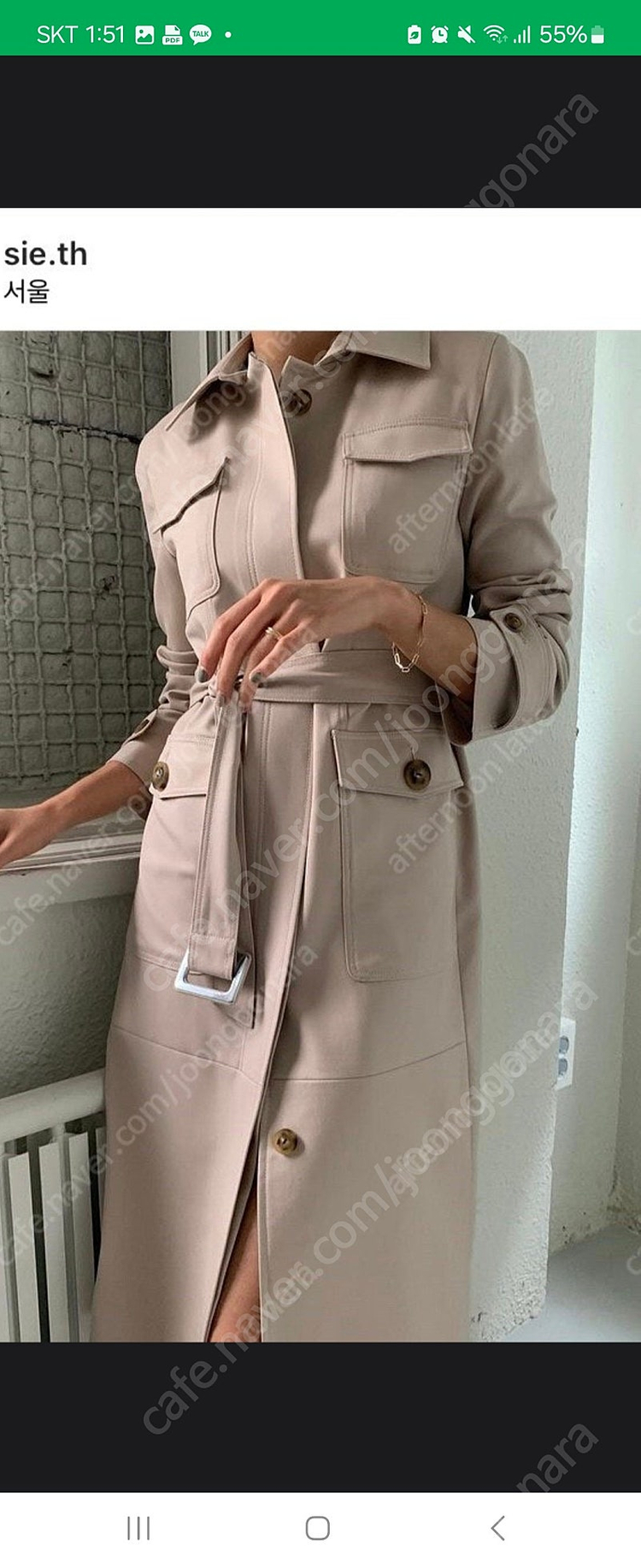 📢 제목에 "제조사/ 브랜드 명"과 "상품명”를 넣어 작성하면, 보다 빠른 판매가 가능합니다! 📢 게시글 작성 시 배송 방법에 “직거래”와 “내 위치” 설정할 경우, 보다 빠른 판매가 가능합니다! 네이비같은 블랙과 베이지 있어요 각각 70000원입니다. 몇해전 구입했는데 원피스로 입을려고샀는데 미듐은 저에게 커서 잘 안입게돼드라구요. 한번 착용했어요 🚨회원님의 거래 게시글을 노린 중고나라 운영진 사칭 피싱 사이트를 주의하세요🚨