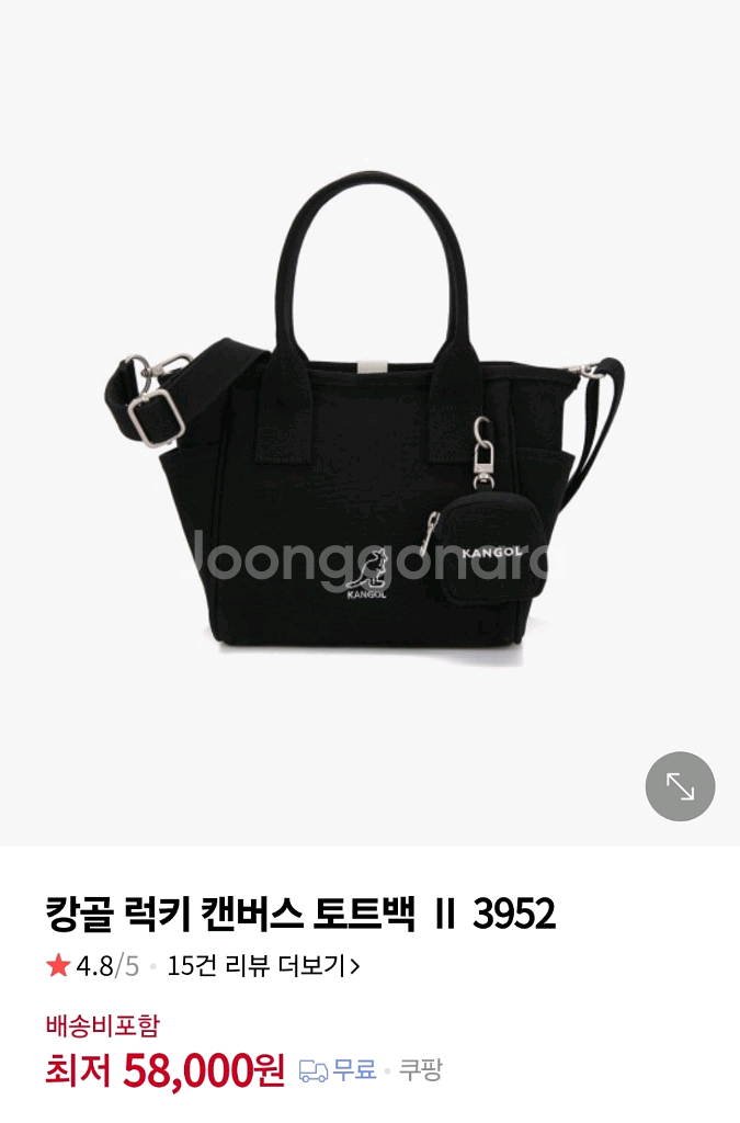 캉골 럭키 캔버스 토트백입니다 새상품이고 토드, 크로스 둘다 가능하고 캥거루 로고가 포인트로 들어간 귀여운 가방입니다 옆에 작은 파우치도 달려있어 수납이 용이합니다 정가 88,000원입니다 직거래 하남, 택배 착불 교환, 반품 사양