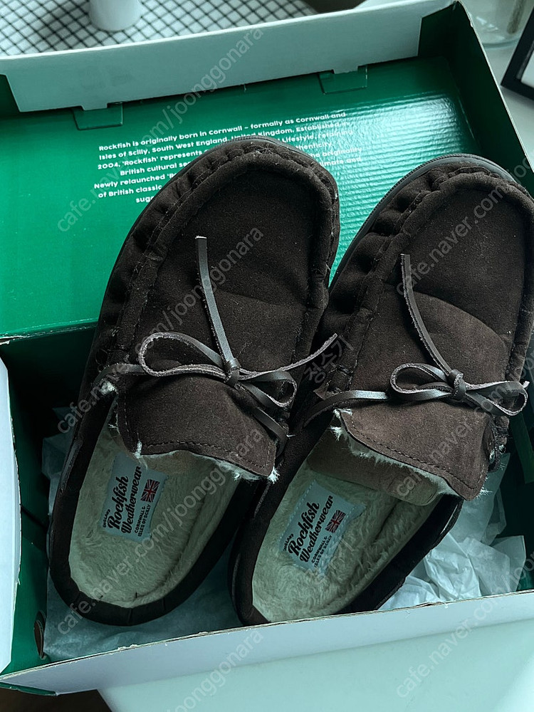 (1회 착용) 락피쉬웨더웨어 퍼 뮬 모카신 초코색 245