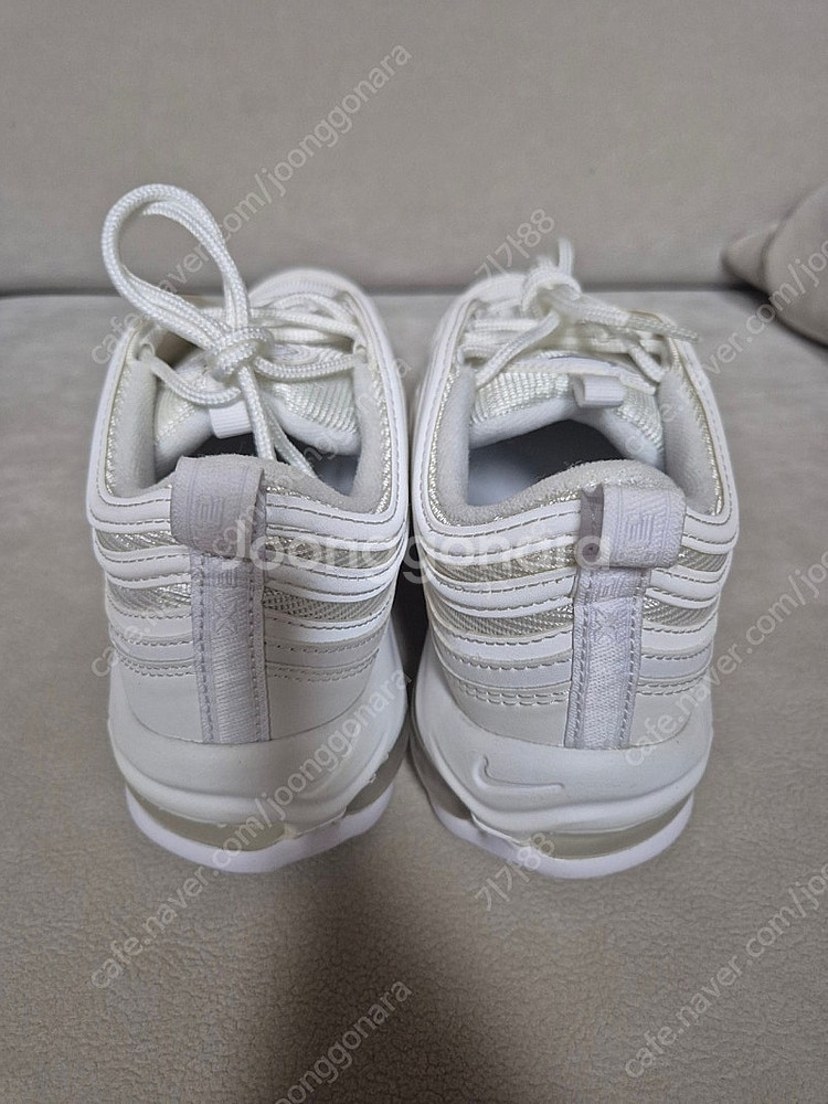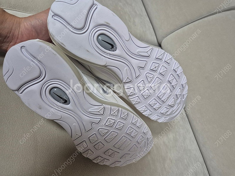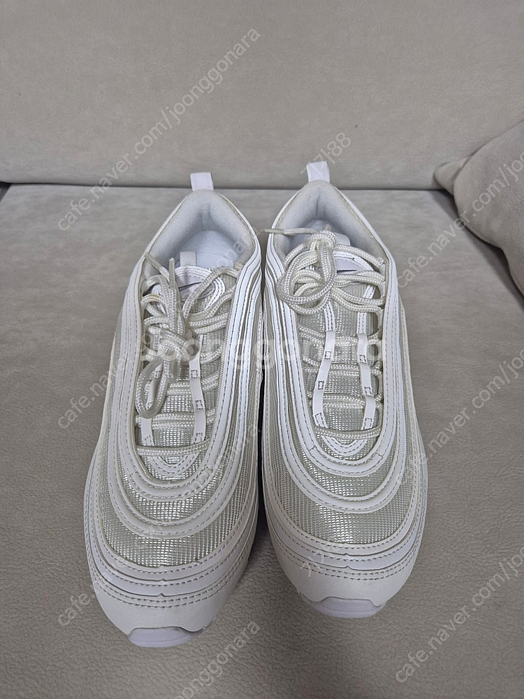📢 제목에 "제조사/ 브랜드 명"과 “상품명”을 넣어 작성하면, 보다 빠른 판매가 가능합니다! 📢 게시글 작성 시 배송 방법에 “직거래”와 “내 위치” 설정할 경우, 보다 빠른 판매가 가능합니다! 🚨회원님의 거래 게시글을 노린 중고나라 운영진 사칭 피싱 사이트를 주의하세요🚨 나이키 에어맥스 97 흰색 판매합니다. 당연히 정품이구요 사이즈는 265mm입니다. 사진 새상이 좀 어둡게 나왔습니다만 밝은 흰색? 입니다. 새상품입니다 흰색이라 엄두가 안나서 방출합니다. 착불입니다