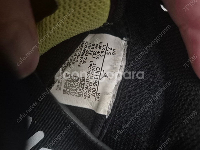 📢 제목에 "제조사/ 브랜드 명"과 “상품명”을 넣어 작성하면, 보다 빠른 판매가 가능합니다! 📢 게시글 작성 시 배송 방법에 “직거래”와 “내 위치” 설정할 경우, 보다 빠른 판매가 가능합니다! 🚨회원님의 거래 게시글을 노린 중고나라 운영진 사칭 피싱 사이트를 주의하세요🚨 1 나이키 흰색 농구화 판매합니다. 어두운색 신발은 서비스 (230~240) - 사이즈: 250mm - 상태: 사용감 있습니다 (세탁비 감안해서 올려요) 2 조던 농구화 검정색에 노란색 포인트가 있는 디자인입니다. 밑창은 껌솔입니다. - 사이즈: 255mm 3 나이키 카이리 플라이트랩 5 농구화 블랙 색상입니다. 사이즈는 260mm이고, 사용감은 있지만 전반적으로 상태는 괜찮습니다. 일괄판매 아이가 발이 금방금방 커서 많이 안신었습니다. 모두 세탁하면 상태 좋아요