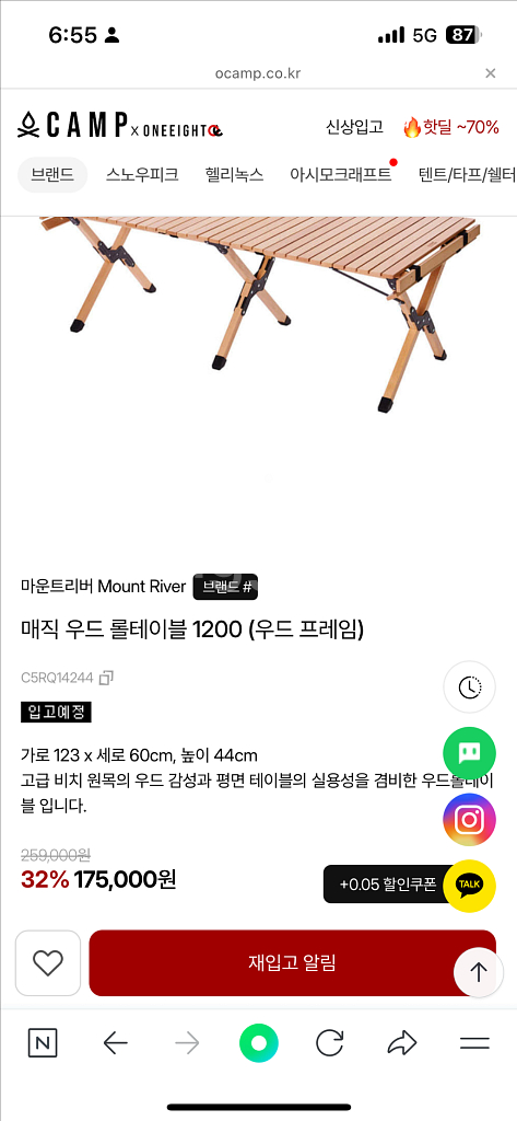 마운트리버 매직 우드 롤 테이블 1200입니다 캠핑 감성 더해줄 우드 테이블이에요 - 사이즈: 123 x 60 x 44 cm - 고급 비취 원목 사용 - 우드 감성, 평면 테이블 실용성 수납 가방에 제습제 같이 넣어 보관했어요 일부 사용감 있으니 감안해서 구매해주세요 직거래 방문•문고리 거래 O, 교환•환불•반품 X