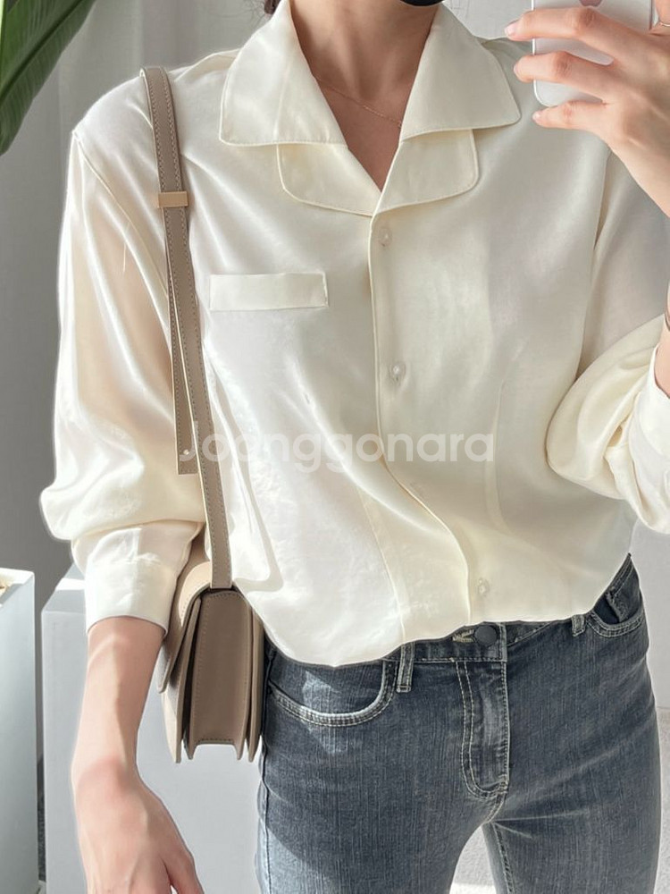 (새제품) 더블카라 셔츠 블라우스 아이보리 FREE 가슴45 기장62.5 암홀26 소매기장53.5 밑단50