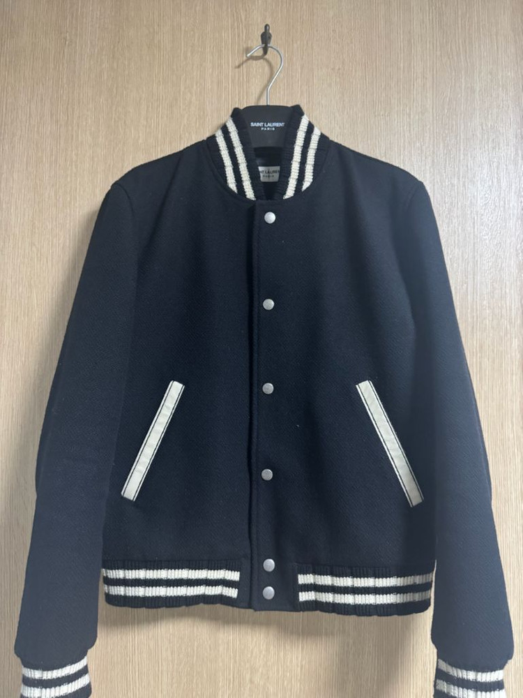 브랜드: 생로랑 상품명: 테디 블랙 백 로고 바시티 자켓 색상: 블랙 사이즈: 46 size (실측 90~95) 하자 여부: 없음 구성품: 옷걸이,정품 인증서 곧 가을인데 하나 장만합시다 ~ 궁금하신 거 있으시면 채팅주세요 네고는 불가능 합니다