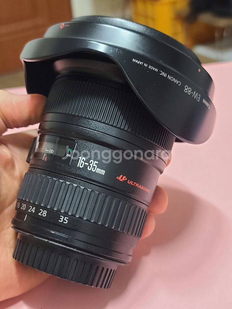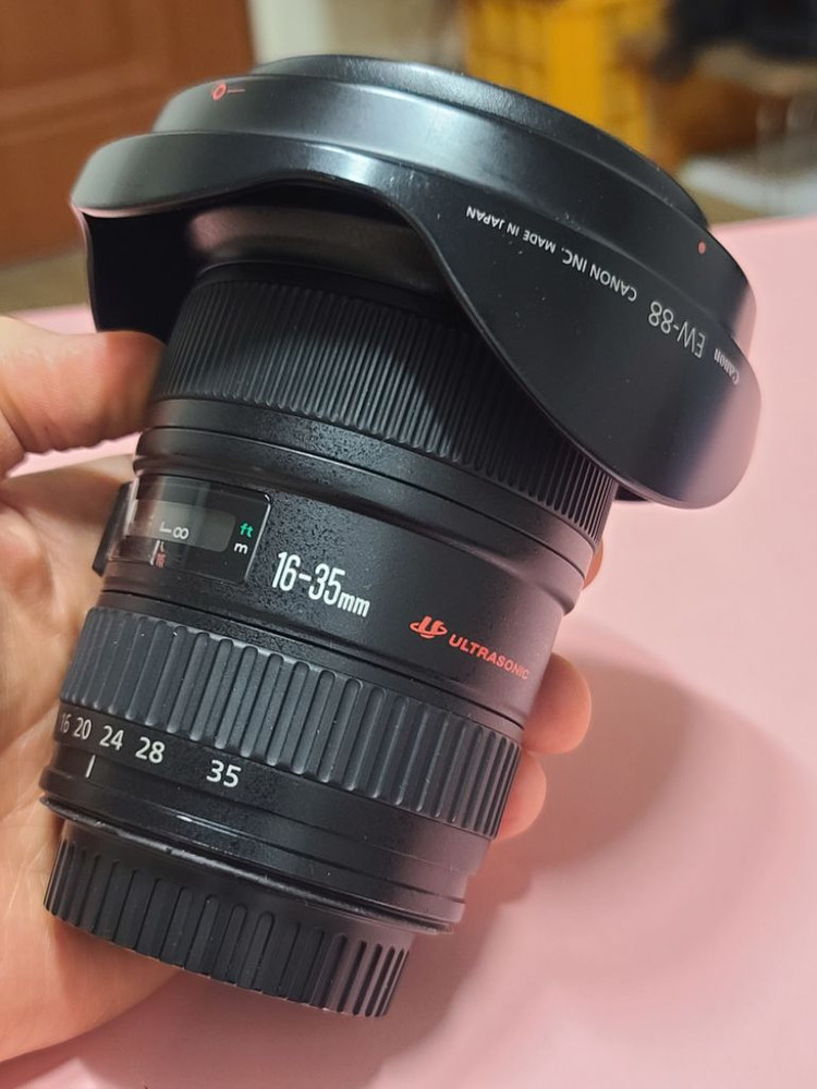 캐논 EF 16-35mm F2.8L II USM 입니다. 캐논에서 가장널리 쓰이는 광각줌으로 광각 중 상위제품에 속하는 모델이며 최고급 L렌 즈 입니다 써보시면 왜많이들 찾는제품인지 아실겁니다 사용감 있으나 전체적 양호하고 여타하자 없습니다 앞뒷캡 정품후드 끼워드 리며 필터는 없습니다 쓸만한 풀프용 광각줌 찾으셨다면 구매하셔도 좋습니다 우체국운 임 포함입니다. °안전거래 로만 판매하며, 결제하시면 포장잘해서 우체국택배로 보내드립니다 직거래 원하시면 다른 것을 구매하시고 직거래문의시 답변하지 않습니다. °결제 하셨다가 취소요청 하실경우 판매자에게 상당한 피해가 될수있고, 부득이 취소수락이 늦어질수 있으므로 신중한구매 부탁 드립니다. °문의없이 그냥 결제하셔도 수시로 확인하니 알아 서 발송해 드립니다 오전 7시전 주문은 당일 발송 해 드리고, 이후는 익일 발송됩니다 사정상 예약을 통해 방문택배를 이용해서 그렇습니다 휴일이나 주 말 안끼면, 결제후 늦어도 이틀안에는 받으십니다. 《수령후 확인해보시고 가급적 신속한 '구매확정' 부탁 드립니다~》