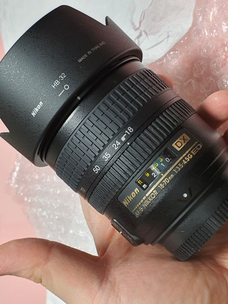 니콘 번들 3대장중 아빠번들로 불리는 18-70 이며 친숙하게 쓰이는만큼 가격대비 성능이 쓸 만한 제품입니다 부담없는 가격에하나 구비하 시면 여러모로 쓰임새많은 크롭용 표준줌 이네 요 렌즈 앞뒷캡 정품후드 끼워드리며 필터는 없 습니다 사용감 많이없이 전체적 깨끗하고 여타 하자 없습니다 상태좋은제품 저렴히 써보세요. 우체국운임 포함입니다. °안전거래 로만 판매하며, 결제하시면 포장잘해서 우체국택배로 보내드립니다 직거래 원하시면 다른 것을 구매하시고 직거래문의시 답변하지 않습니다. °결제 하셨다가 취소요청 하실경우 판매자에게 상당한 피해가 될수있고, 부득이 취소수락이 늦어질수 있으므로 신중한구매 부탁 드립니다. °문의없이 그냥 결제하셔도 수시로 확인하니 알아 서 발송해 드립니다 오전 7시전 주문은 당일 발송 해 드리고, 이후는 익일 발송됩니다 사정상 예약을 통해 방문택배를 이용해서 그렇습니다 휴일이나 주 말 안끼면, 결제후 늦어도 이틀안에는 받으십니다. 《수령후 확인해보시고 가급적 신속한 '구매확정' 부탁 드립니다~》