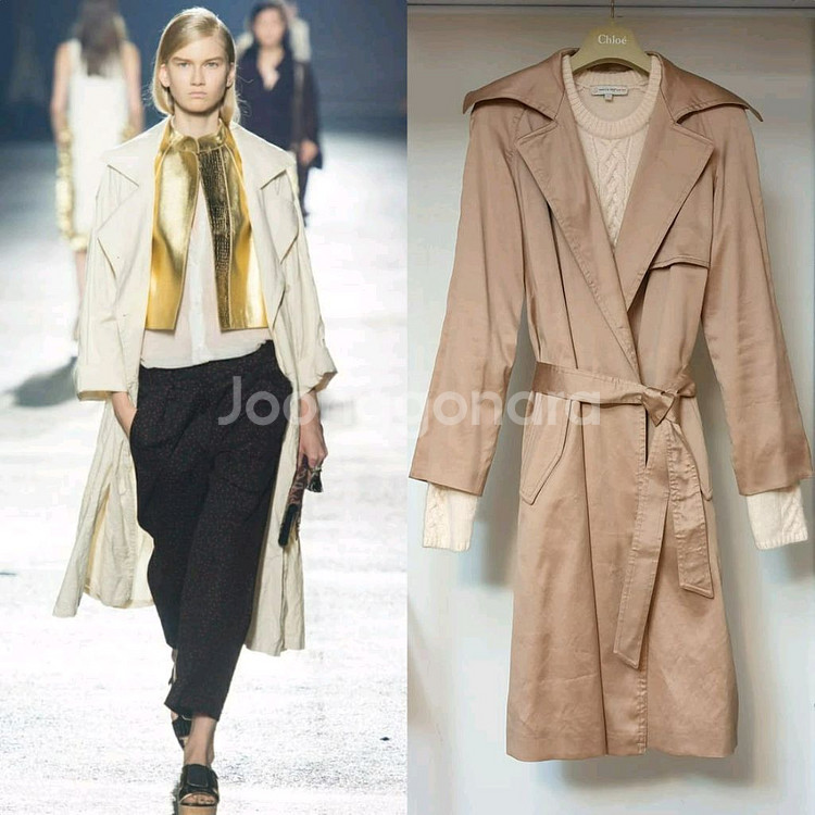 심플하고 절제된 디자인으로 컬러 본연의 아름다움을 오롯이 느낄 수 있는 간절기용 트렌치코트입니다. 빛과 각도에 따라 샴페인핑크?골드핑크?로즈골드처럼 보이는 너무 예쁜 색감이에요. 코튼 91%,나일론 9% 혼방으로 만들어져 탄탄하고 힘이 있으며 새틴같은 매끈한 윤기가 도는 원단이구요. 여밈은 동색 원단의 허리끈을 묶거나 풀어서 연출해 주심되요. 뒤 슬릿이 깊게 나있어서 활동하기에도 편합니다. 상태 최상이며 사이즈 38(M) 55~슬림 66 권장드려요. 드리스반노튼 엄청나게 고가인거야 잘 아실테니 알아보시는 분께서 득템하셔요.