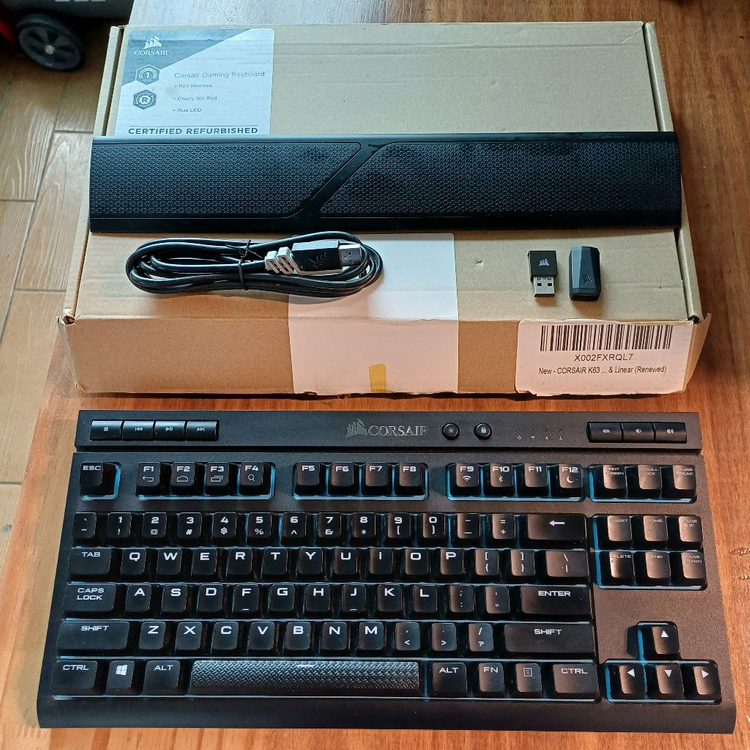 커세어 k63 영문판 블루led 버전입니다. (국내판매용 한글각인 적색 led 아닙니다.) 박스풀 구성이며, 사용감은 있는편입니다. 사진참고. 팜레스트도 끼고 사용했기에 사용감 많으나 크게 찍히거나 손상된곳없고 모든키 정상작동합니다. 에어건으로 전체한번 불어주었지만 키보드 사이사이 먼지는 구입하셔서 직접 분해 청소 or 그냥사용하시면 됩니다. 배송비 포함된 가격이며, 구매후 반품 안되니 신중히 생각하셔서 구매하시길바라며, 민트급 생각하시는분은 새제품 추천드립니다. 네고문의는 답변없습니다.