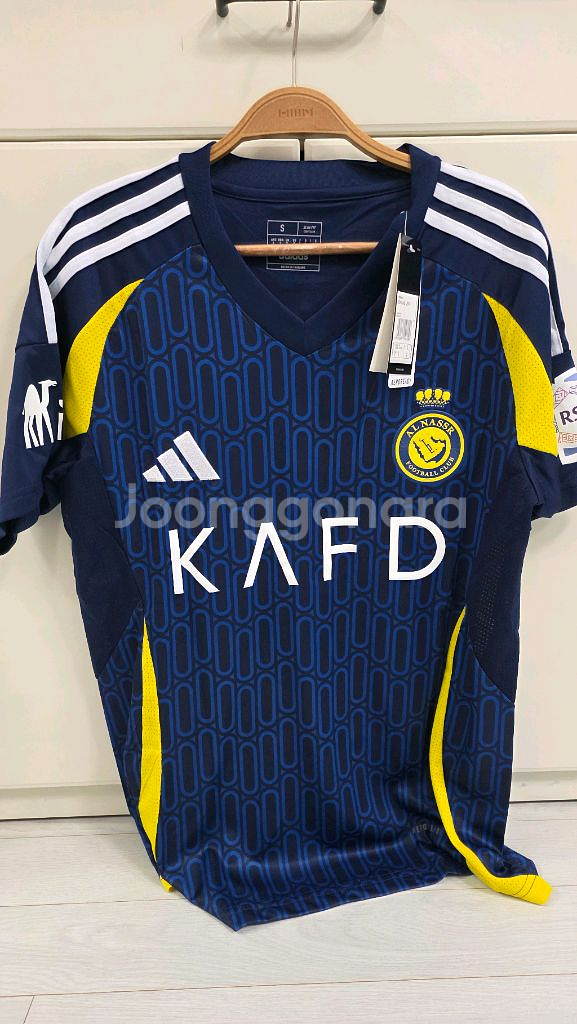 호날두 알나스르 유니폼입니다(새상품) 국내 사이즈s 정품x 정품 모방 제품인데 사이즈를 잘못시켜서 올립니다.. 택배비 포함 네고x