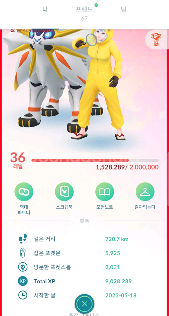 렙 36 발로 노스트 (구글) GP 안쓰고 순수 손으로 키웠습니다. 포켓몬 가방 1200 아이템 가방 500 레시라무 레거시 100 망나뇽 100 솔가레요 100 있습니다.