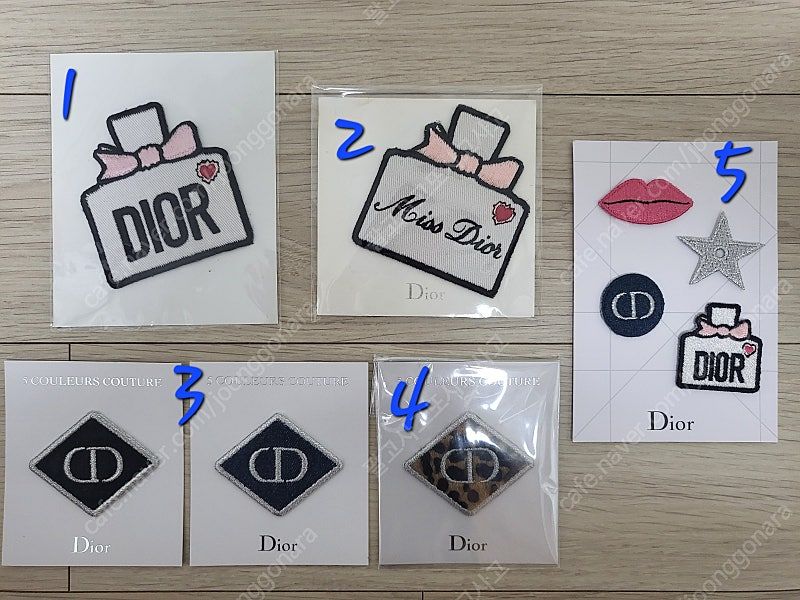 미사용. 새상품. 옷, 모자, 가방등 어디에나 다리미로 눌러 부착 가능한 아이템이예요. 1번/2번 개당 4만원 3번 (좌 블랙, 우 곤색) 개당 2만원 4번 호피무늬 개당 4만 5번 4가지 세트 6만원 ***아래 읽어보시고 문의하세요*** 직거래xxx, 택배만가능. 택배비는 별도 구매자 부담입니다. (대한통운 및 반택만 가능. gs는 주말 cu는 평일. 꼭 우체국 원하시면 수거라 비용 추가 됩니다. 애눌문의xxx,택포요구xxx 입금후 취소 xxx. 문자만! 전화xxx 교환,환불 xxx. 묶음배송가능. 중고나라 앱으로 채팅 주세요.