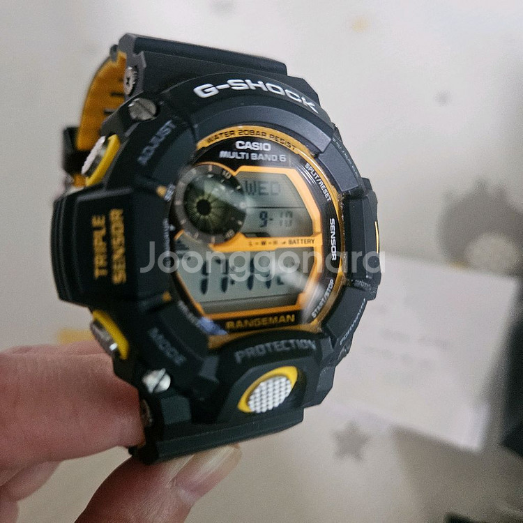 G-SHOCK 레인지맨 시계입니다- 블랙 색상에 옐로우, 로즈 골드 포인트가 있습니다- 트리플 센서, 방수, 충격 방지 기능- 박스 포함 📢 제목에 "제조사/ 브랜드 명"과 “상품명”을 넣어 작성하면, 보다 빠른 판매가 가능합니다! 📢 게시글 작성 시 배송 방법에 “직거래”와 “내 위치” 설정할 경우, 보다 빠른 판매가 가능합니다! 🚨회원님의 거래 게시글을 노린 중고나라 운영진 사칭 피싱 사이트를 주의하세요🚨