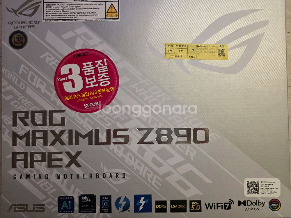 ASUS Z890 APEX 팝니다. STCOM 정품입니다. A/S 29년 8월 말까지 연장등록 완료 안전거래 가능합니다. 택배거래시 도착 당일 확정 및 배송중 파손 면책동의 간주하여 거래합니다.