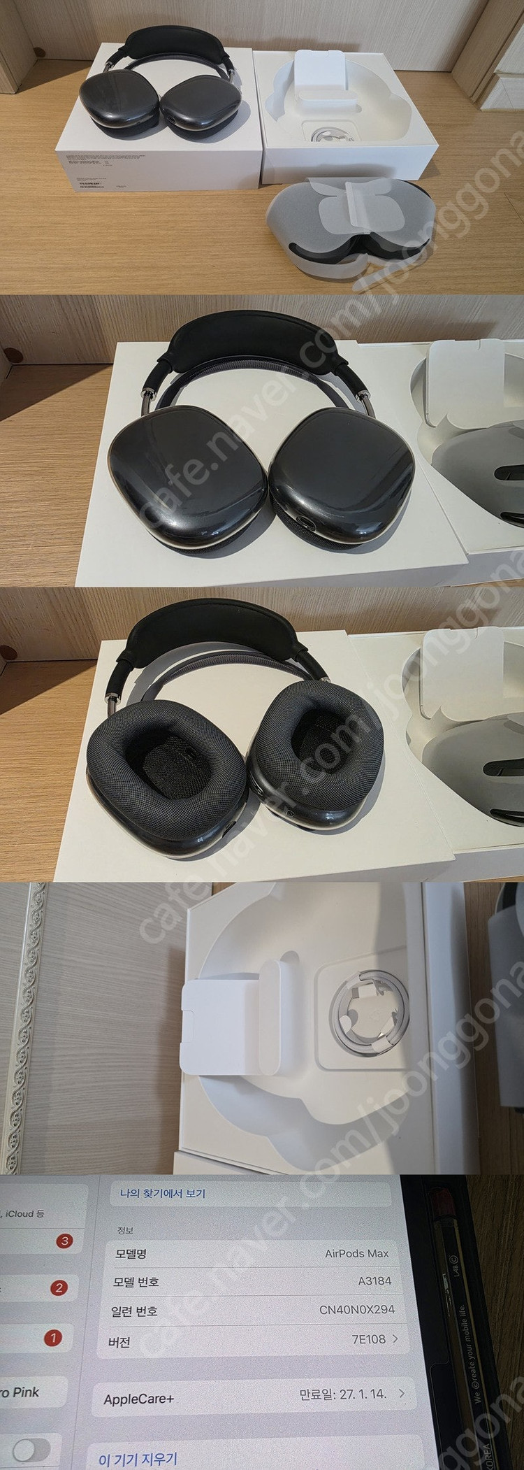 애플 에어팟 맥스 미드나이트 USB-C 버전 팝니다 (APPLE AIR PODS MAX) 2025년 1월 15일 애플 명동점에서 신품으로 구매했으며 색상은 미드나이트 USB-C 버전입니다 애플케어도 구매 당시 같이 가입해서 2027년 1월 14일까지 사용 가능합니다 (구매 영수증 있으며 필요하신 경우 같이 드리도록 하겠습니다) 구매 후 많이 사용하지 않았고 (약 10~20회 사이 사용) 구매당시부터 보호캡 등을 씌우고 사용해서 상태는 신품 수준으로 매우 양호합니다 (자세한 상태 등은 사진 참고바랍니다) 구성품은 구매 당시와 동일하게 모두 그대로 있습니다 (구성품 등은 사진을 참조하시기 바랍니다) 애플케어 가입비 등을 고려하여 판매가는 56만원입니다 구매 후 반품 및 환불은 불가하오니 신중한 구매 부탁드립니다 직거래는 5호선 애오개역에서 가능합니다 (예약후 펑크 내시는 분들이 계셔서 무조건 빨리 구매(또는 입금)하시는 순으로 우선권 드립니다) 연락처는 010-8677-86일이 입니다!