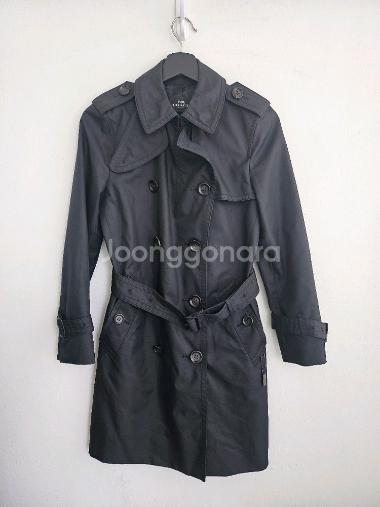 블랙 색상의 코치 트렌치코트입니다 전체적으로는 상태가 아주 좋은데 허리 벨트 부분 칠이 살짝 벗겨지고 가슴 부분과 팔 안 쪽에 살짝 뜯김이 있어 저렴하게 판매합니다~ (사진 참고) 그 외에는 너무 훌륭합니다 예민하지 않으신 분 저렴한 가격에 코치 코트 장만하세요~^^ 중고상품 특성상 교환 반품 어려운 점 미리 확인 부탁드립니다 ^^
