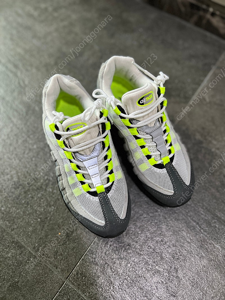 📢 제목에 "제조사/ 브랜드 명"과 "상품명”를 넣어 작성하면, 보다 빠른 판매가 가능합니다! 📢 게시글 작성 시 배송 방법에 “직거래”와 “내 위치” 설정할 경우, 보다 빠른 판매가 가능합니다! 나이키 우먼스 에어맥스95 네온형광 NIKE WMNS AIR MAX 95 NEON (307960-002) 사이즈 : 230mm 구입 후 3회 정도 착용 사이즈 미스로 보관만하다 팝니다. 리셀로 비싸게 구입한 제품입니다. 정리하는 겸 아주 저렴하게 내놓아요. 득템하세요! 일반택배 +4000원 반값택배 +2000 참고 부탁 드립니다 😊 🚨회원님의 거래 게시글을 노린 중고나라 운영진 사칭 피싱 사이트를 주의하세요🚨