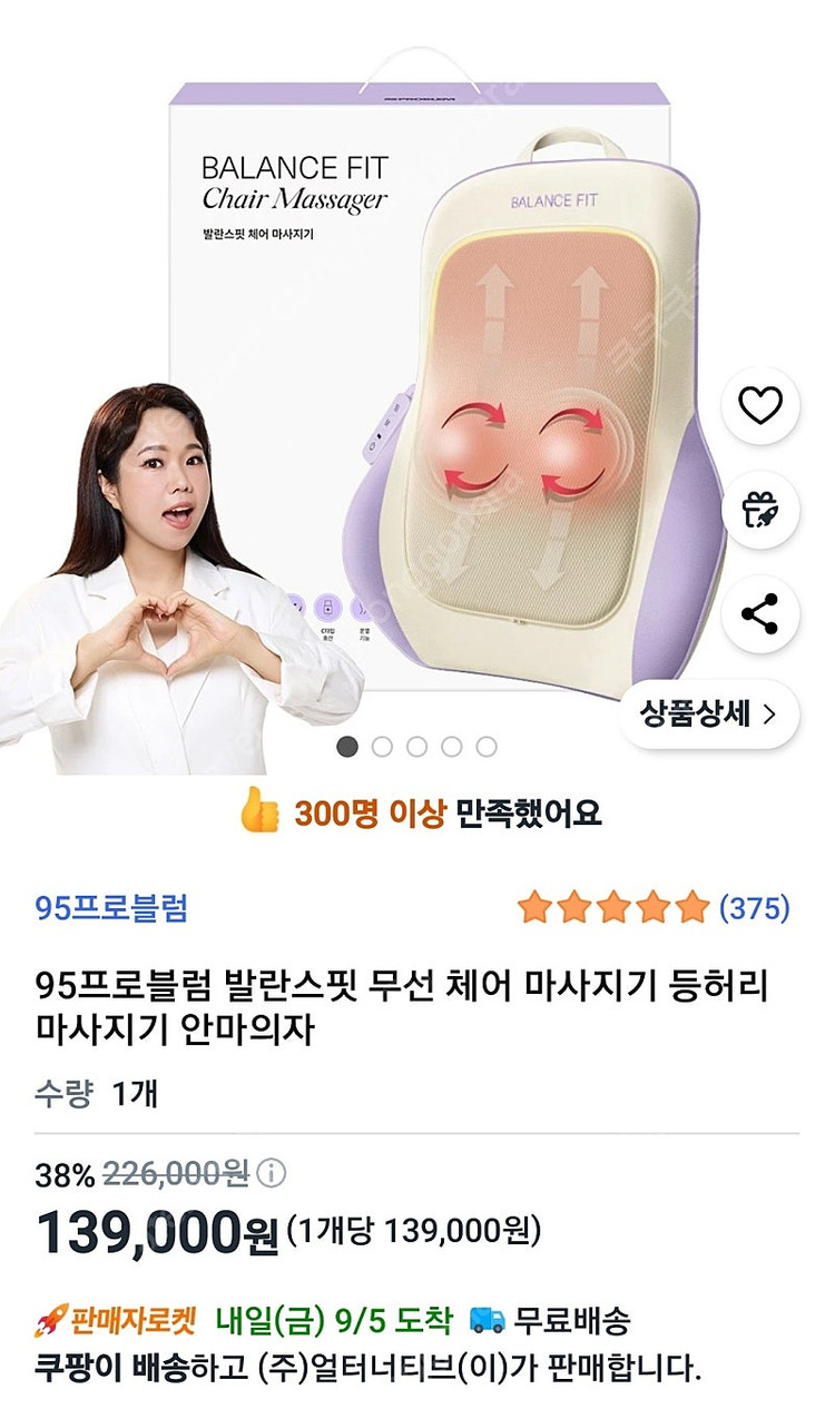 [미개봉 새상품] 발란스핏 체어 마사지기 등허리 안마의자