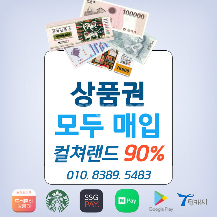 모든 상품권 및 포인트 삽니다 *중고나라활동 17년이상 *오프라인 대면 매입가능 (경기하남) *신세계상품권 오프라인 판매 - [수입 일부는 어린이 복지재단 기부하고있습니다] [대한적십자사 희망나눔풍차 등록 & 검색가능] [항상 정직한 마음으로 매입하겠습니다] ▶ 호호핀 홈페이지 24시간 자동즉시 10초입금 ▶ 중나/N검색창 [ 호호핀 ] ▶ O1O-8389-5583 **채팅문의는 확인이 어렵습니다. **연락처로 연락주시면 24시간 빠른답장 드리겠습니다. - & 매입표 ● 홈페이지 자동매입 컬쳐랜드 - 90% 문화상품권 - 90% 롯데모바일 - 94% 북앤라이프 - 90% 틴캐시 - 90% 카톡구글교환권 - 90% ▶ 호호핀 홈페이지 24시간 자동즉시 10초입금 ▶ 중나/N검색창 [ 호호핀 ] ▶ O1O-8389-5583 **채팅문의는 확인이 어렵습니다. **연락처로 연락주시면 24시간 빠른답장 드리겠습니다. ● 온라인 수기매입 신세계모바일 - 94% 롯데모바일 - 94% 스타벅스 - 88% N.포인트 - 92%~ L.포인트 SSG pay 머니 / 상품권 구 글 (교환권 / 코드) 기타 모든 온라인상품권 및 포인트 ▶ O1O-8389-5583 ● 오프라인 모든 실물 종이상품권 신세계 현대 롯데 주유 국민 농협 기타 모든 지류상품권 --- ▶ 호호핀 홈페이지 24시간 자동즉시 10초입금 ▶ 중나/N검색창 [ 호호핀 ] ▶ O1O-8389-5583 **채팅문의는 확인이 어렵습니다. **연락처로 연락주시면 24시간 빠른답장 드리겠습니다.