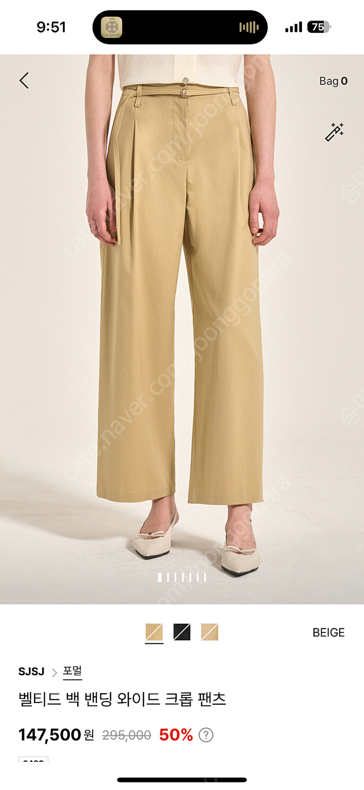 📢 제목에 "제조사/ 브랜드 명"과 “상품명”을 넣어 작성하면, 보다 빠른 판매가 가능합니다! 📢 게시글 작성 시 배송 방법에 “직거래”와 “내 위치” 설정할 경우, 보다 빠른 판매가 가능합니다! SJ SJ 벨티드 백 밴딩 와이드 크롭 팬츠 편안하게 착용 가능해요. 벨트 디테일이 돋보입니다. 구매 가격은 147,500원입니다 아울렛 구매 후 보관만 한 새상품이고 현재 사이트 품절입니다. 영등포구청-문래역인근 직거래 택배거래 가능 🚨회원님의 거래 게시글을 노린 중고나라 운영진 사칭 피싱 사이트를 주의하세요🚨