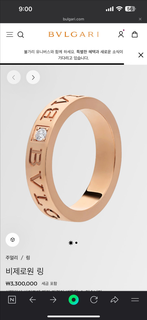 불가리 비제로원 핑크골드 18K 링 다이아 1개 세팅 판매합니다. 개당 280만원 60호 사이즈 1개 53 사이즈 1개 구매 후 박스 열지도 않아서 그냥 새 제품이라고 보시면 됩니다. 26년 1월 16일까지 무료로 사이즈 조절 가능합니다!! (이후에는 유료로 사이즈 변경 가능 그 이후에 사이즈 변경하면 비용 지원해드리겠습니다) 사이즈 +2 ~ -1 까지 가능해요 박스와 파우치 쇼핑백 모두 포함되어 있습니다. 보증서 영수증 모두 보관 중 입니다. 구매하실 의향 있으면 구경 오셔도 됩니다 서울 부산 왔다 갔다 하기 때문에 직거래도 가능합니다
